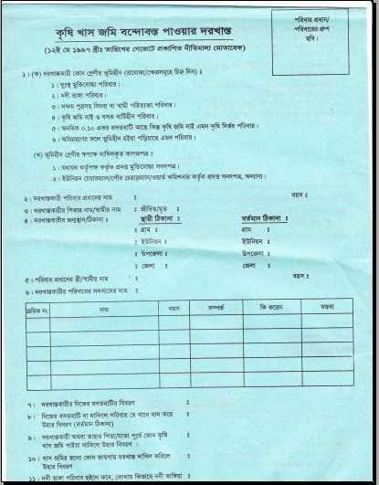 কৃষি খাস জমি বন্দোবস্তের ফরম
